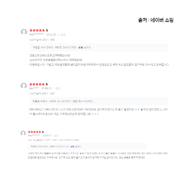 크로스핏 운동화로 나이키 메트콘을 이용하시는 분들이 많이 말씀하시는 것이 성능에는 만족하나, 발목이 넓은 사람은 사이즈업를 해야 한다는 것입니다. 그래서 반품 프로세스가 잘 되어 있는 지 확인하시고 구입하시는 걸 추천드립니다. 가까이 매장이 있다면 사이즈를 확인하는 것도 필요합니다. 같이 운동하는 분도 발볼이 넓은 편이라 한 치수 업해서 신고 계신다고 합니다. 사람마다 발모양이 다르고 발가락 길이도 다 다르기 때문에 본인 발에 편한 사이즈로 구매하시면 되겠습니다. 나이키 홈페이지 리뷰에서도 그런 내용을 언급한 것이 눈에 보입니다.